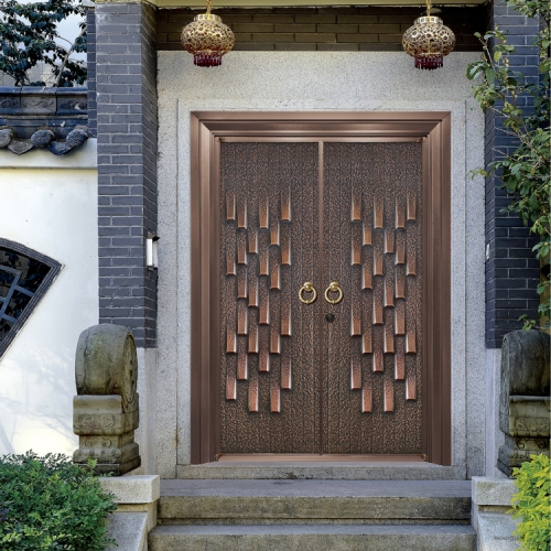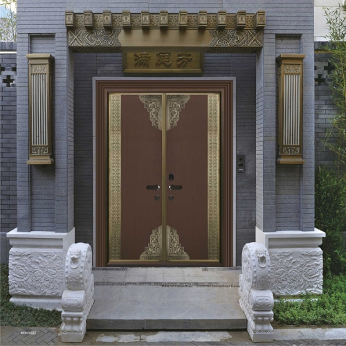 选择铜门是因为它具有独特的优势。首先,铜门是一种具有高度装饰价值的门。因为它是由铜材质制成,所以其表面具有特殊的质感和光泽。铜门通常采用精细的雕刻和铸造工艺,可以呈现出各种独特的纹理和图案,展现出传统文化和现代艺术的魅力,是一种非常具有装饰
